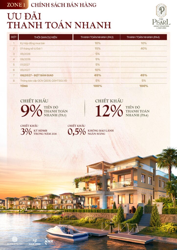 Zone 2 The Pearl Waterpoint: Ưu đãi thanh toán và tiến độ thanh toán nhanh áp dụng tháng 1 năm 2026.