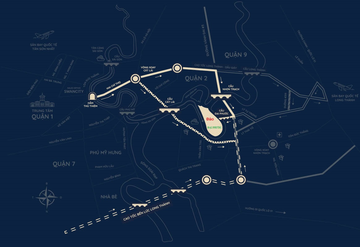 Nằm ngay trục đương lớn qua cầu Đại Phước kết nối từ lối ra đầu tiên của cao tốc TPHCM – Long Thành – Dầu Giây.